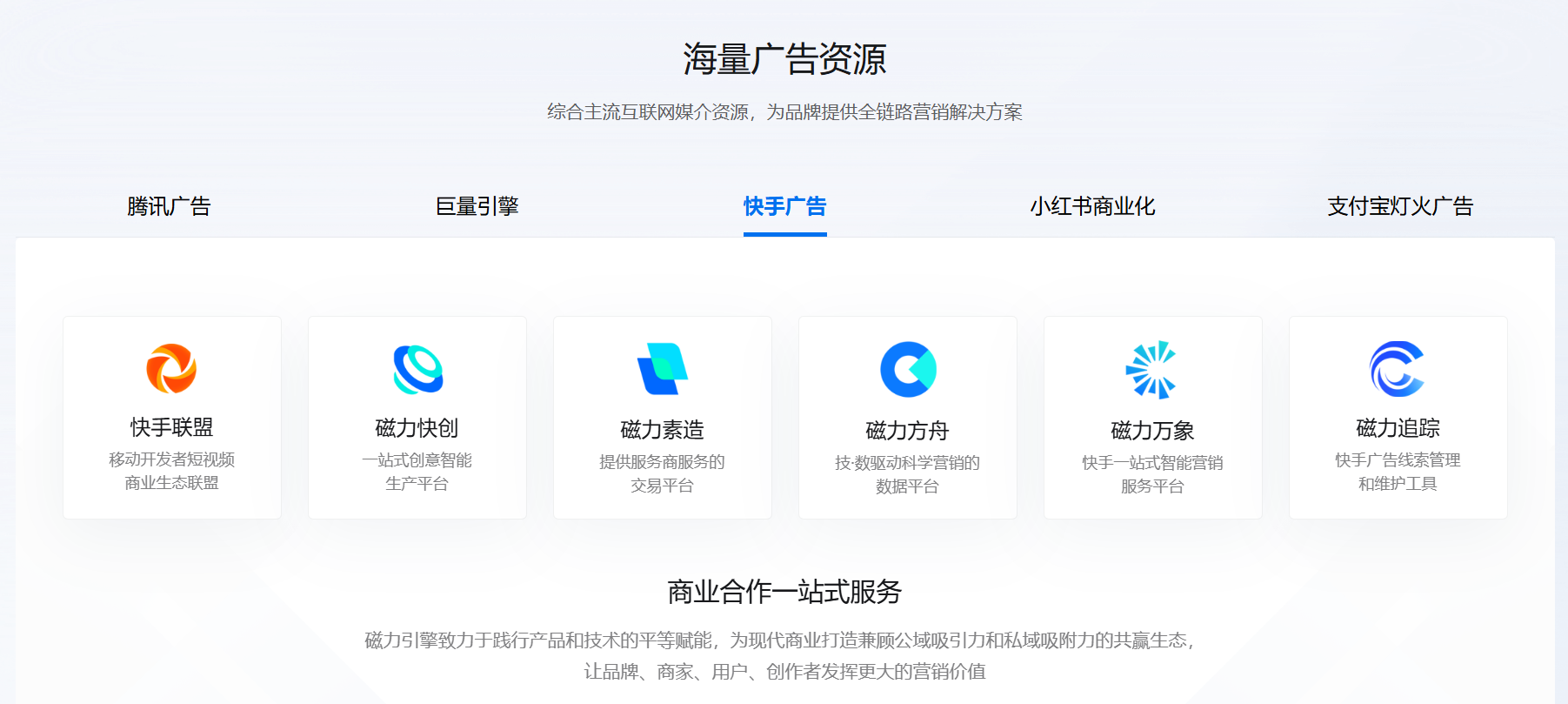 不仅能做小红书,还能多平台协同放量:除了小红书投放,还能做腾讯广告(朋友圈 / 视频号)、抖音/快手投放,要是品牌想做全域营销,不用再找多家服务商,一家就能搞定,避免数据和策略割裂。